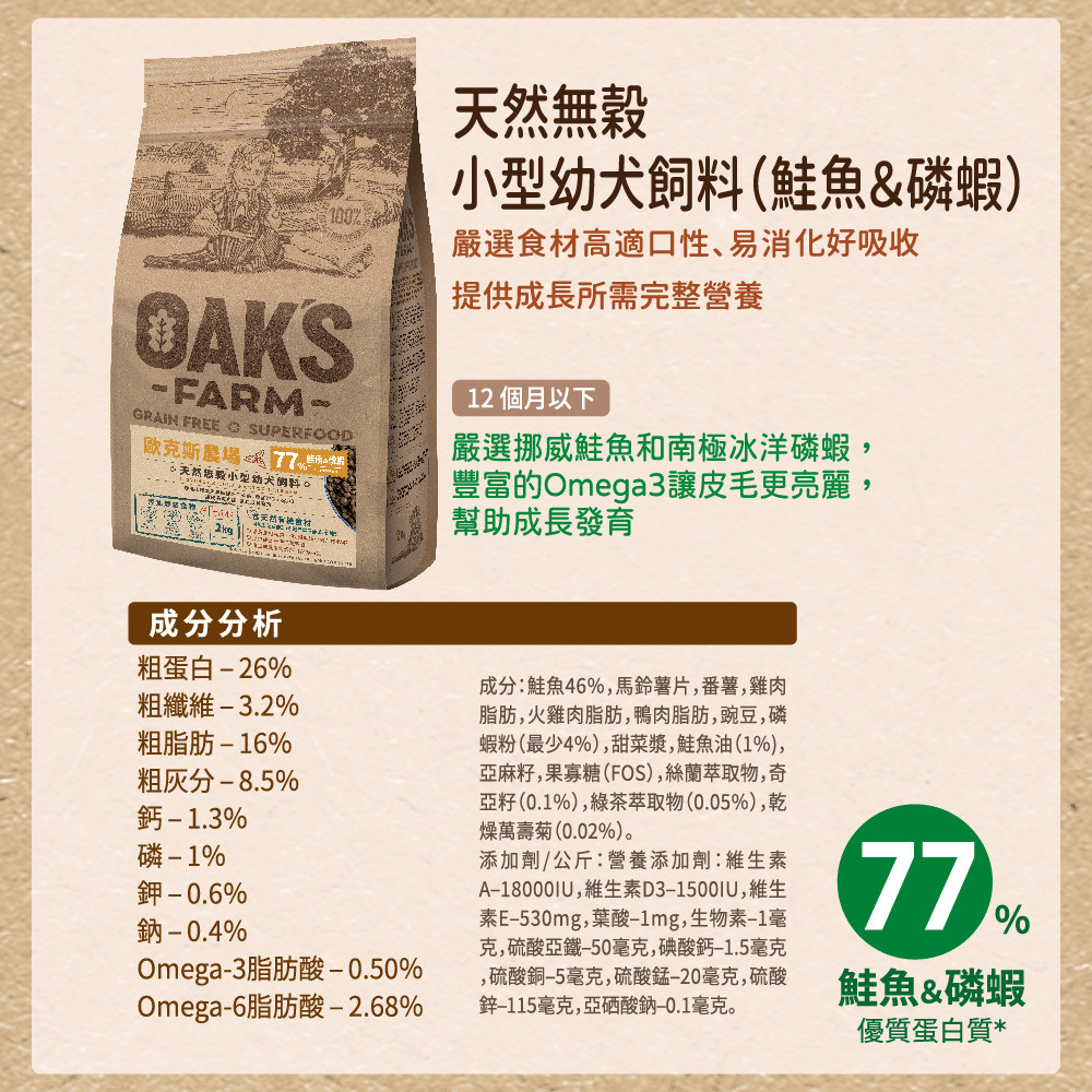 歐克斯天然無穀小型幼犬飼料 鮭魚.磷蝦